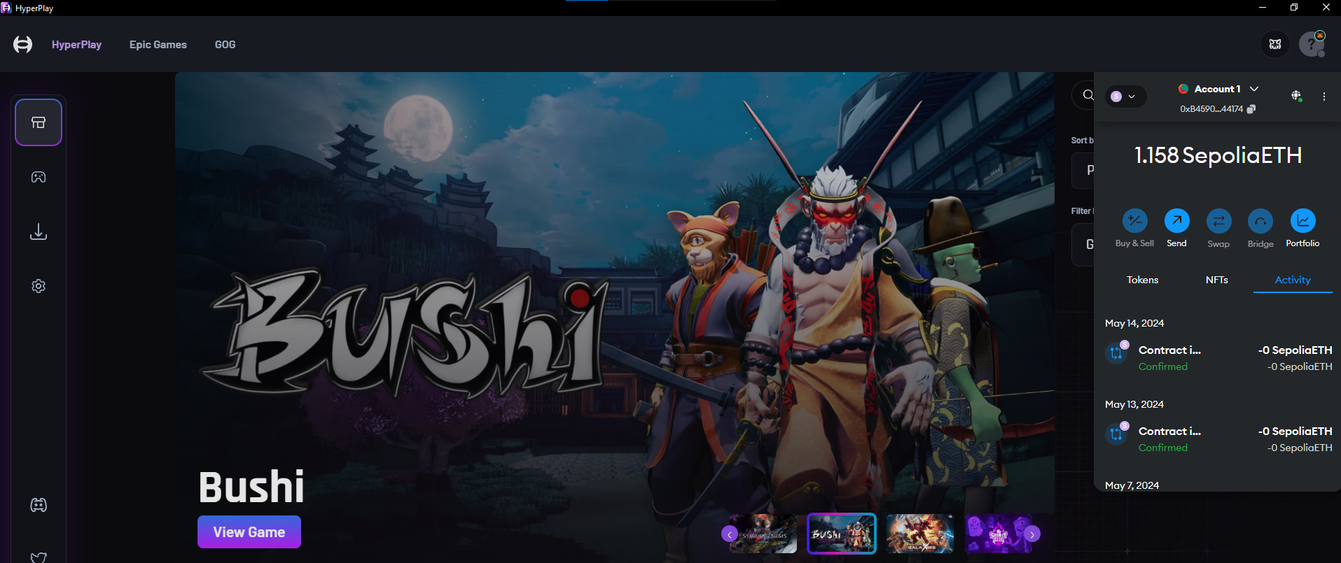 HyperPlay is a wallet solution that runs in a desktop client. It uses web requests to communicate with the wallet and the client and makes connecting to games easy and simple.