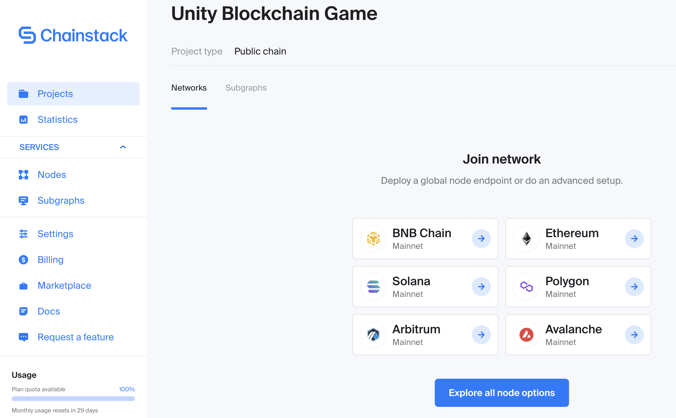 Note that Chainstack’s Developer plan provides 3 million free API requests per month. This should be enough for most testing and app development purposes. If your game requires more calls per month, we would suggest upgrading your plan.