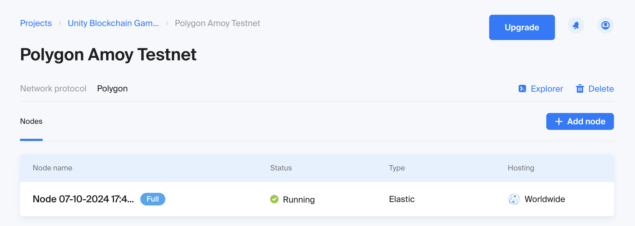 From here, take note of the HTTPS endpoint, which will be the RPC URL you will use to configure web3.unity and allow your Unity game to interact with the blockchain.