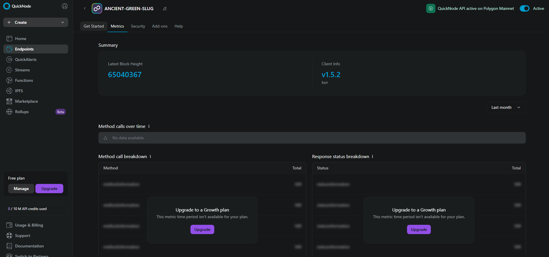 - QuickNode also has a great metrics area to track additional data, feel free to have a look around.