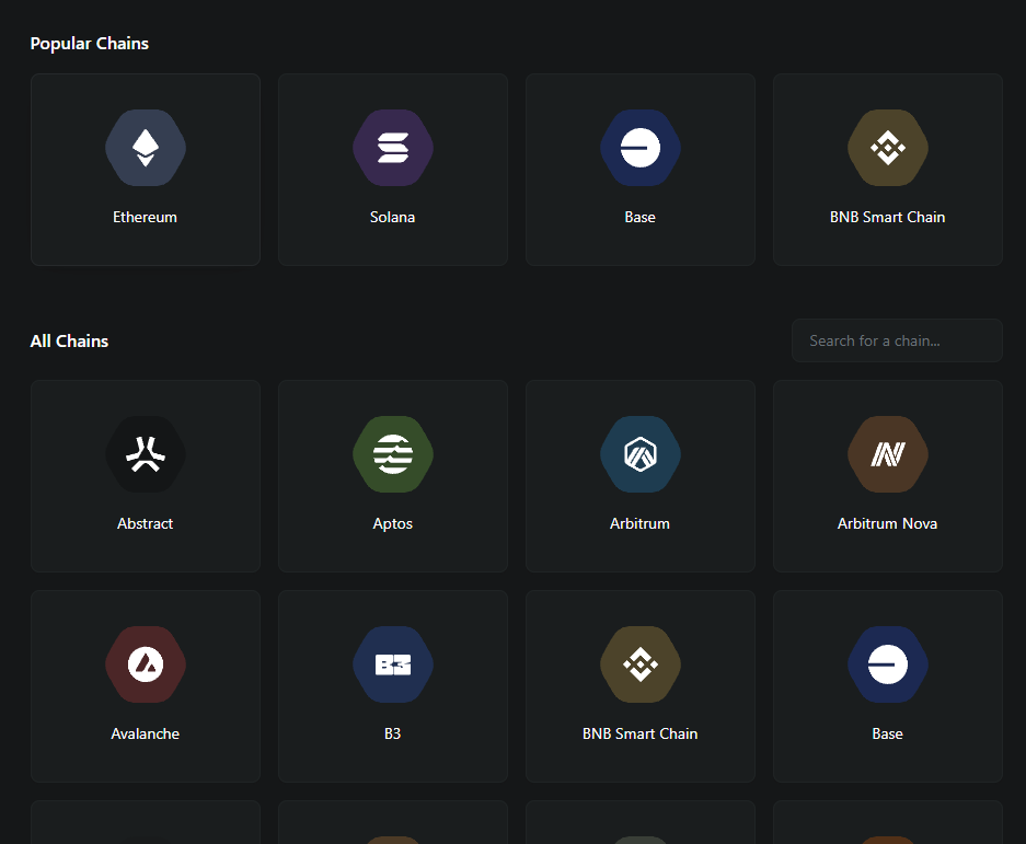 - Select your chain & network, please choose an EVM compatible chain to work with the SDK.